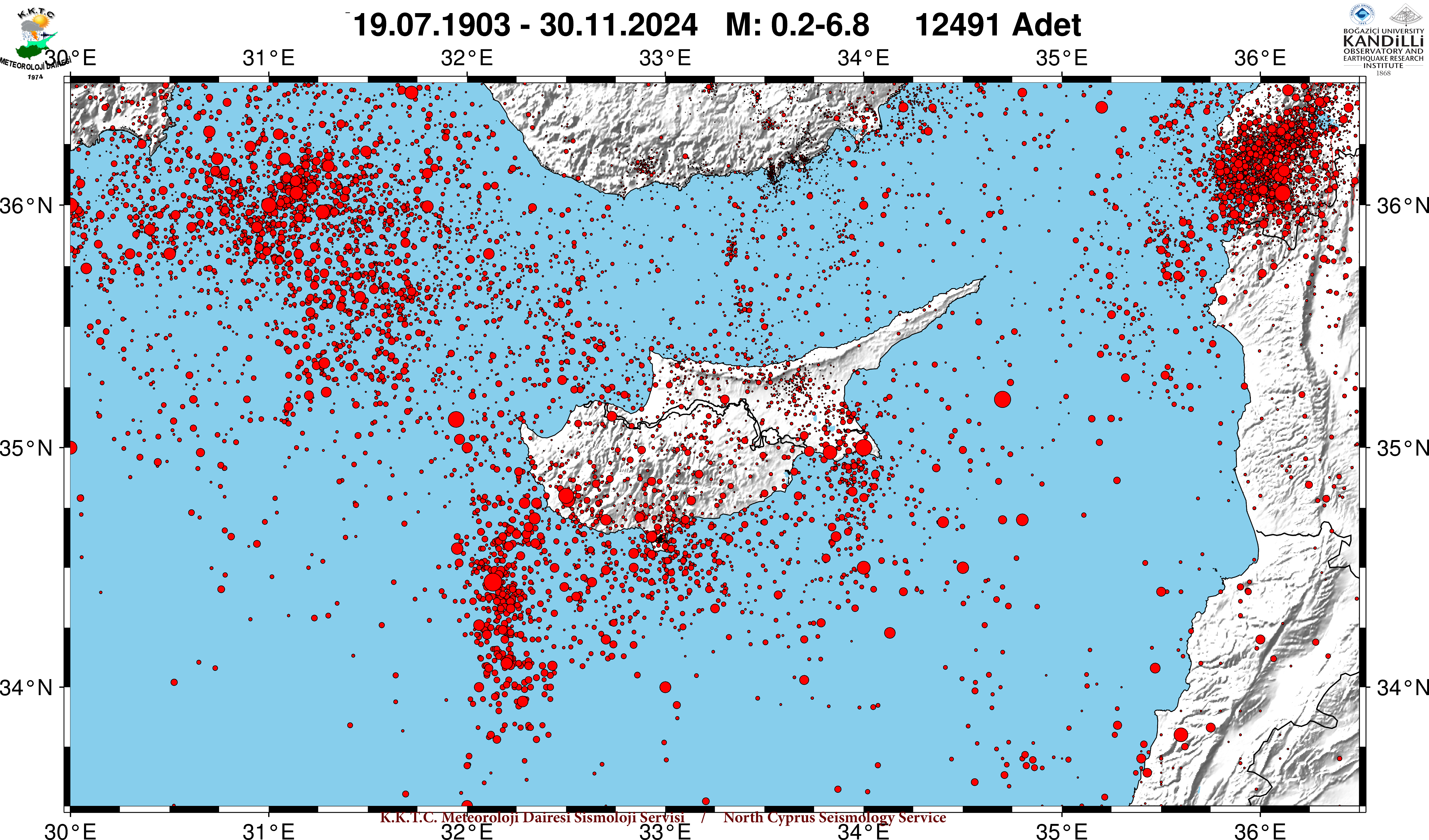 19.07.1903 - 30.11.2024 M :0.2 - 6.8 Depremleri